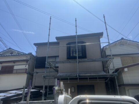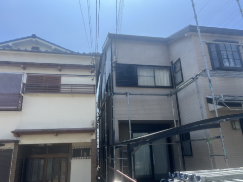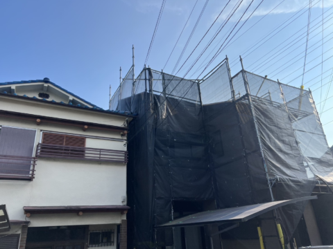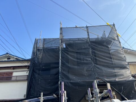 株式会社勝建設が行なった屋根塗装工事用足場についてご紹介いたします。
