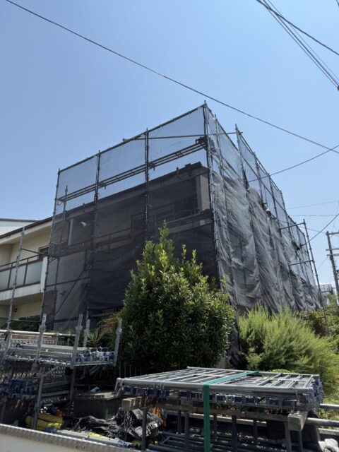 株式会社勝建設が行なった壁塗装・屋根塗装工事用足場についてご紹介いたします。