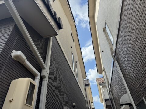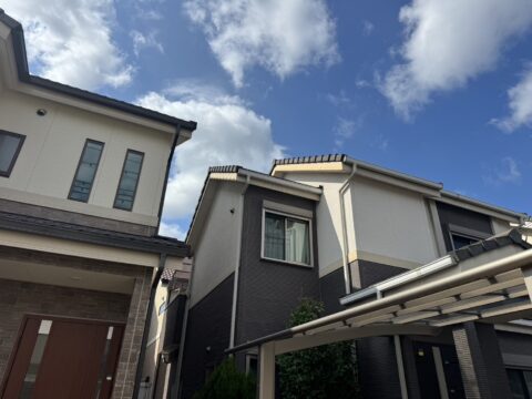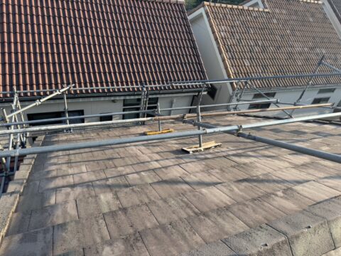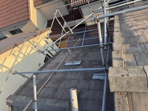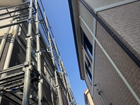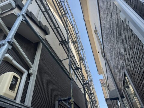 株式会社勝建設が手掛けた屋根塗装、壁塗装用足場をご紹介いたします。