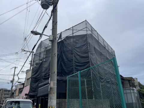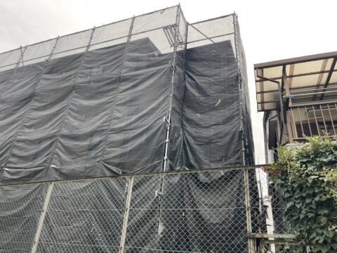 株式会社勝建設が行なった屋根塗装・シール工事用足場についてご紹介いたします。