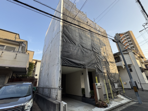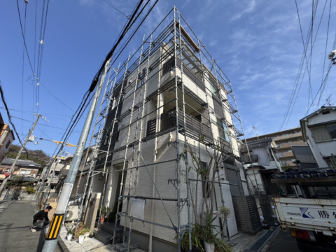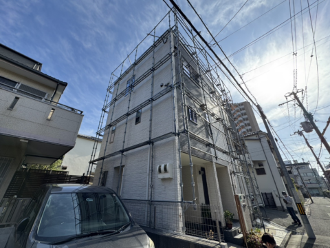 株式会社勝建設が行なった、壁塗装工事用足場の施工実績をご紹介いたします。