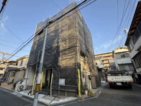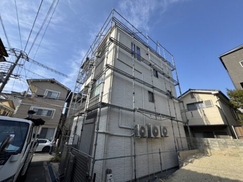 今回の施工では、壁塗装工事に伴う足場の設置を行い、作業が安全かつ円滑に進められるよう、現場環境の整備に取り組みました。