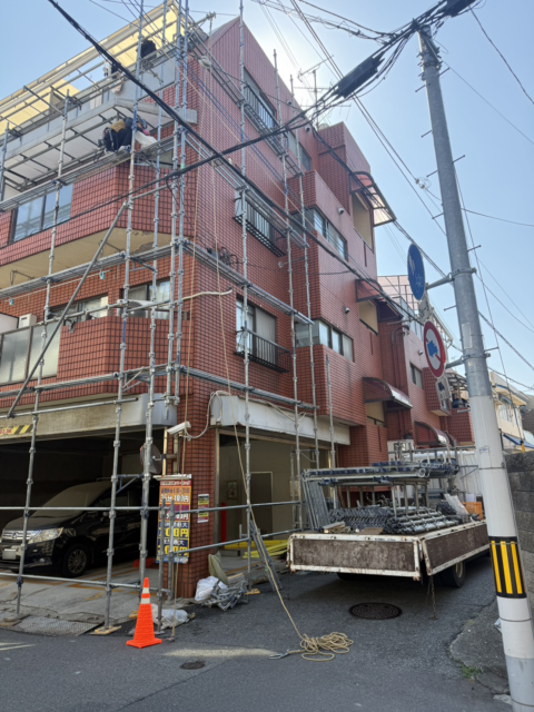 株式会社勝建設が行なった、外壁工事用足場の施工実績をご紹介いたします。